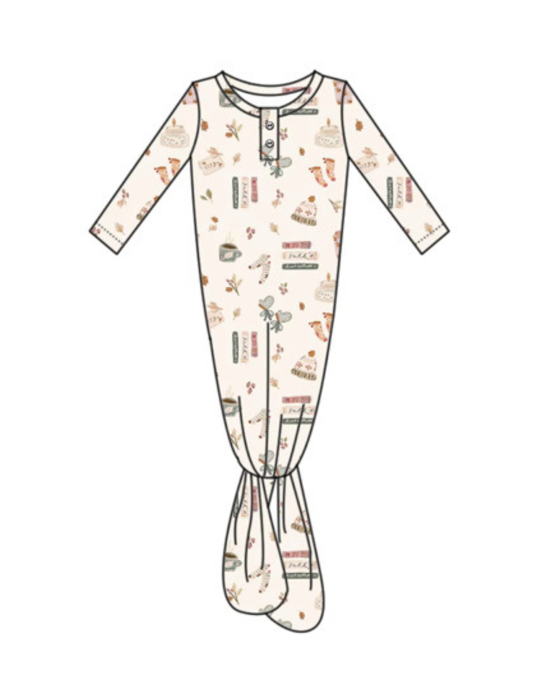 Soft bamboo fabric keeps newborn skin comfortable while built-in mittens prevent scratching. The adjustable knot bottom grows with your baby, and the open-front design makes diaper changes quick and easy. Gender-neutral autumn inspired print completes the look.